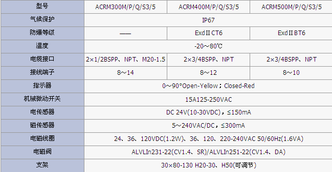 產(chǎn)品簡(jiǎn)介:型號(hào)ACRM300M/P/Q/S3/5ACRM400M/P/Q/S3/5ACRM500M/P/Q/S3/5氣候保護(hù)IP67防爆等級(jí)&mdash...